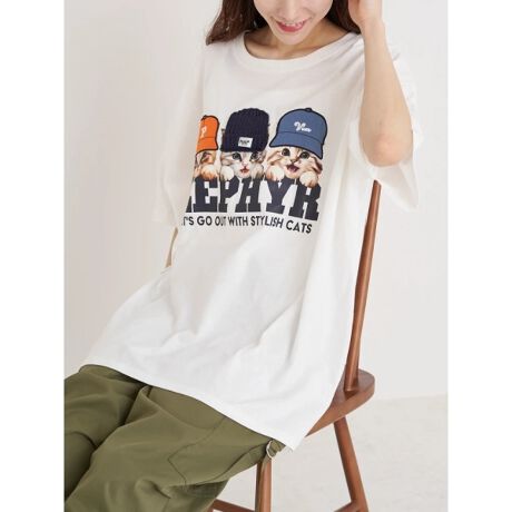 帽子をかぶった3匹のネコがキュートな着映えTシャツ。