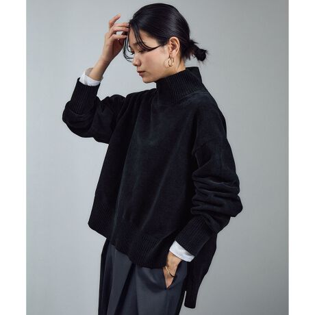 前後差のある着丈で今っぽさと体型カバーを兼ね備えたタートルネックプルオーバー。