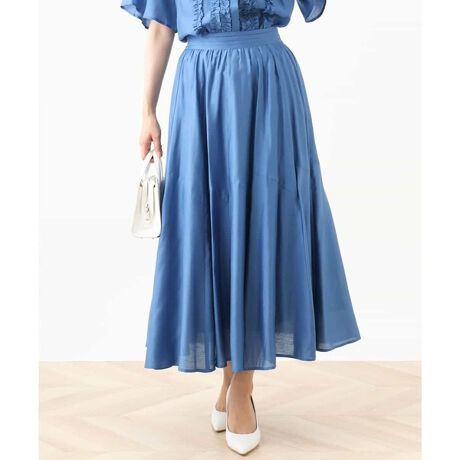 たっぷりの分量のあるフレアースカート。程よいシアー感が軽くやわらかで女性らしい印象に。