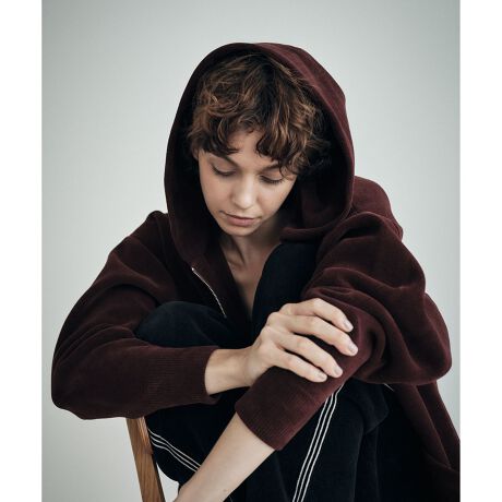 上下どちらからも開閉できる逆開ファスナー仕様で、インナー見せのレイヤードも楽しめるデザインです。