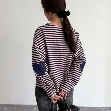 ハートのエルボーパッチがアクセントの、大人も着たいボーダーT