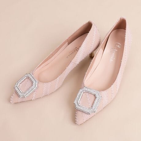 ビジューバックル ポインテッドトゥパンプス