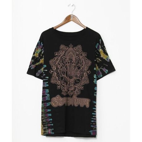 【タイ直輸入】ガネーシャやハムサ、マンダラなどキャッチーなデザインが大胆にあしらわれたコットンTシャツ。サイドのタイダイ染め加工が他には無い個性的なスタイルを引き出す。ゆったり着られるサイズ感が嬉しいポイントです。