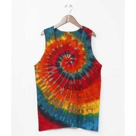 [型番:TXX-5636-2025]【タイ直輸入】大胆なタイダイ柄が目を惹くコットンタンクトップ。広めの首元としっかりとした綿素材で着心地も抜群。ラフなスタイルにプラスしたい遊び心満点の一枚です。