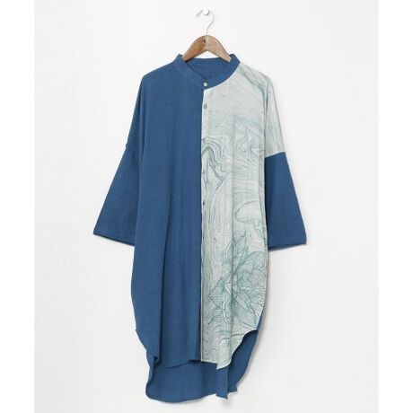 ロータスを描いた長めな着丈のロングシャツ。片側をインしてアシンメトリーシャツとしても楽しめます。泥水の中から美しい花を咲かせる様子から、清らかに生きることの象徴とされるロータス。おしゃれとして、お守りとして、ロータスをコーディネートに取り入れることで込められたメッセージを身近に感じられます。