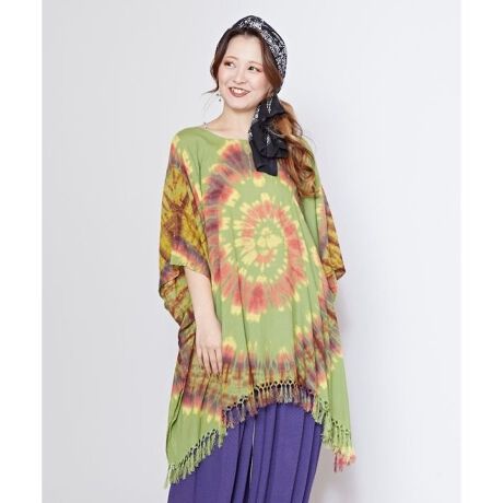 [型番:TXX-5654-2025]【タイ直輸入】タイダイ染めがインパクト大のビックシルエットトップス。落ち感のあるレーヨン素材と、ゆったりデザインで通気性抜群。裾のフリンジがこなれ感と個性を引き立たせる一枚です。