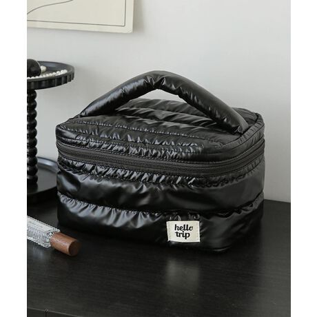 しっかりとしたマチとハンドルが特徴の大容量コスメバッグ。ふんわり軽いキルティング素材で、見た目もおしゃれなうえ持ち運びにも便利なデザインです。