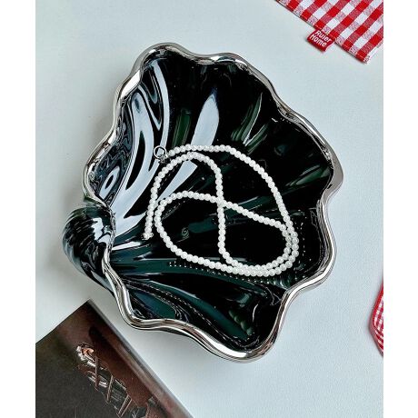 波打つようなフォルムと光沢感のある質感が美しい、貝殻型のアクセサリートレイ。小物やアクセサリーをそっと置くだけで、まるでインテリアオブジェのような存在感を放ちます。
