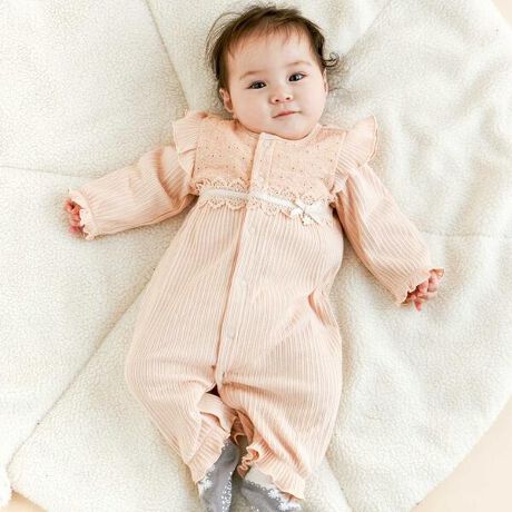 肩フリル切り替えお花レース2WAYロンパースベビー(50~70cm)