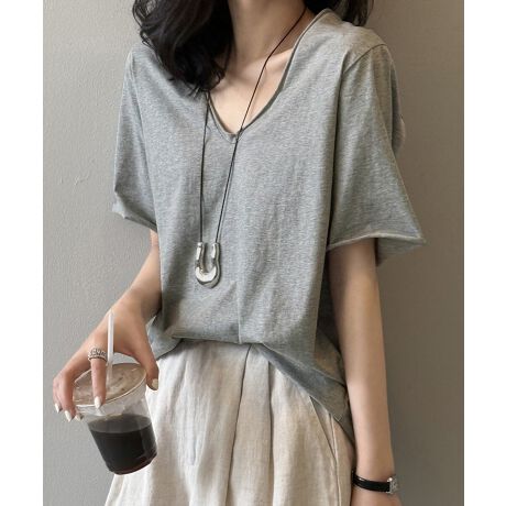 Vネックが抜け感を添える、大人カジュアルな半袖カットソー