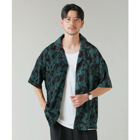 総柄プリントオープンカラー半袖シャツ