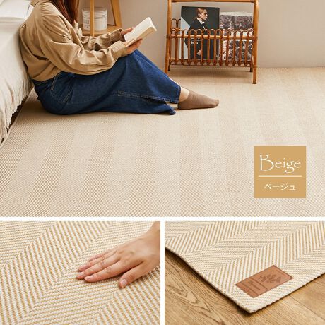 4色から選べるジャガード生地のナチュラルラグ。オールシーズン対応で、すべり止めも付いていて、洗濯機で洗える。機能面もバッチリ。糸の組み合わせ方にこだわりました。