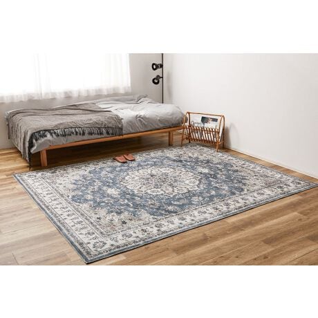 小さな模様や、ヴィンテージのようなかすれ感を細部までプリントで表現した、まるで高級ラグのような一枚。<br>