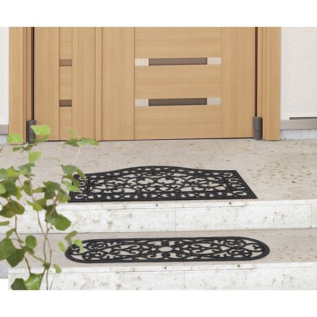 楕円形が素敵な屋外用玄関マット。玄関の階段や玄関先の段差に最適のマットです。玄関のスペースが狭い方にもおすすめです。店舗やオフィスの入り口にもおすすめです。てもやわらかいラバー素材なので、タイルなどをキズつけにくく安心してお使いいただけます。水洗いできるので汚れても安心です。