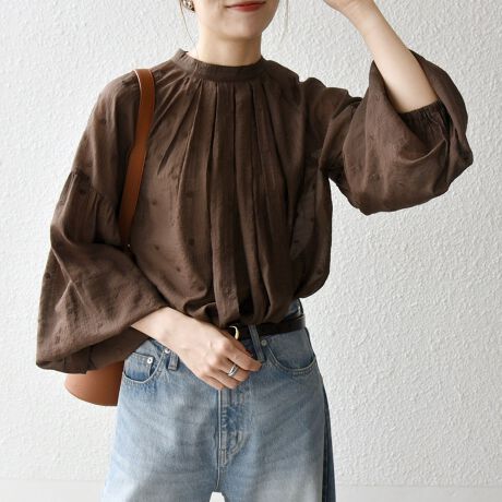 シアー素材×ドット刺繍が大人可愛い、プルオーバー型のブラウス。