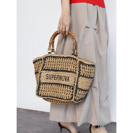ペーパー素材×バンブーハンドルがシーズンムードを盛り上げる2wayバッグ。