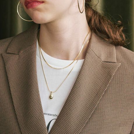 ・長めのほうはスプーンの先のようなコロンとしたフォルムのトップがアクセントになる華奢な印象のネックレス