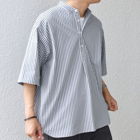 夏に最適なシアサッカー素材のバンドカラープルオーバー型シャツが登場!