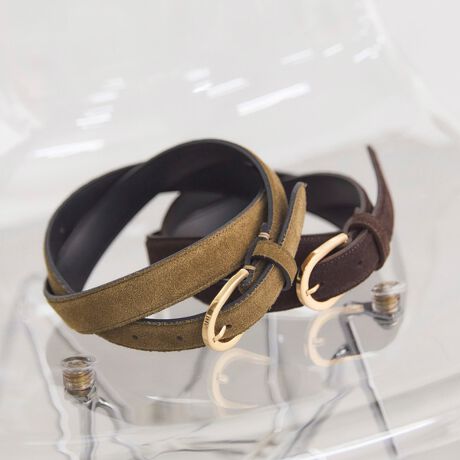 ・ベージュとブラウンのカラーとくすんだゴールドのバックルが品のあるデザイン