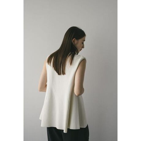 [型番:500IAS70-3161]モデル身長164cm(FREEサイズ着用)ドライなハイツイストコットンで編み立てたシルエットが可愛いニットベスト。身体のラインをすっきり見せるリンキングフレアとモードなショルダータックデティールがポイントです。透け感なし、ストレッチあり。【お手入れ方法】手洗い可