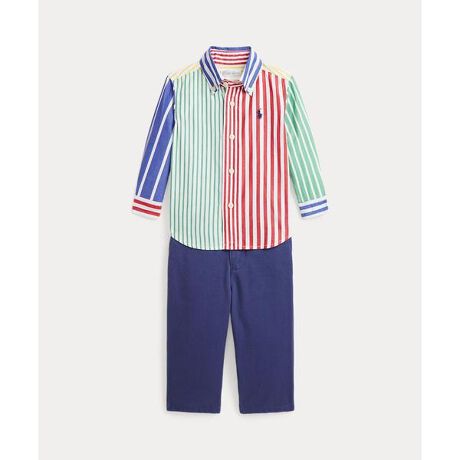 ストライプのポプリンシャツと、コットン100%の生地に柔軟性をプラスするために特別に開発されたクラシックなチノ パンツを組み合わせたセット。・Ralph Laurenのコットン製品を選ぶことで、環境の保護と修復に努めながら、コットン業界が今後も成長を続けられるように支援するBetter Cotton?ミッションへのRalph Laurenの取り組みをサポートすることになります・本商品は物質収支方式に則って材料を調達しているため、全ての製品にBetter Cotton?が含まれない可能性があります。・シャツ:左胸にシグネチャーのポニー刺繍 / ボタンダウンカラー / ボタン付き前立て / 長袖、ボタン付きバレルカフス / ボックスプリーツのバックヨーク・パンツ:背面ポケットの上にシグネチャーのポニー刺繍 / ベルトループ / ウエスト背面に伸縮素材 / 3〜6カ月サイズはフライなし / 9〜24カ月サイズはジップフライ付き / フロント中央にボタン留め・パンツ:フロントに斜めポケット2つ / 背面右にボタン付きポケット※商品の色味は、光のあたり具合など諸条件により色感が多少異なって見える場合がございますので予めご了承下さい。※注意:柄の配置は、商品によって異なります。 【素材】・上 本体:綿 100% 装飾部分を除く パンツ 本体:綿 100% 装飾部分を除く【生産国】インド
