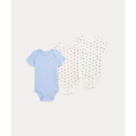 ボディスーツを3着詰め込んだセット。とびきり柔らかなコットンインターロック素材で仕立て、シグネチャーのポニー刺繍をあしらったアイテム。2着はロブスターとカニのモチーフをプリントしたスタイルで、もう1着はクラシックな無地のスタイル。・左胸にシグネチャーのポニー刺繍・エンベロープ ネックライン・半袖・裾にリングスナップ※商品の色味は、光のあたり具合など諸条件により色感が多少異なって見える場合がございますので予めご了承下さい。※注意:柄の配置は、商品によって異なります。 【素材】・ブルー柄 本体:綿 100% 装飾部分を除く 水色無地 本体:綿 100% 装飾部分を除く 赤系柄 本体:綿 100% 装飾部分を除く【生産国】インド