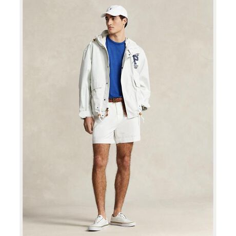サイドアジャスター、プリーツ、チケットポケットを施したPoloハバダッシャリーを彷彿とさせるショートパンツ。ストレッチコットンチノを使用し、蝶貝ボタンで仕上げたアイテム。・ストレッチ クラシック フィット:自然なウエスト履き / 脚にかけてイージーフィット・ベルトループ / サイドにアジャスター / 長めのボタン留めジップフライ / 蝶貝ボタン・ダブルプリーツのフロント・フロントに斜めポケット2つ / 右腰にチケットポケット / 背面にボタン付きポケット2つ・モデル身長185cm、着用サイズ32W39 【素材】・本体:綿 100% 【生産国】スリランカ / ペルー