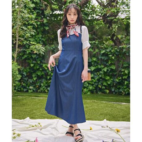バックリボン異素材ドッキングマーメイドデニムワンピース