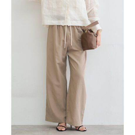 ポリエステル・麻・レーヨンのさらっと落ち感のある生地で、涼しげな履き心地とナチュラルな表情が魅力のワイドパンツ。