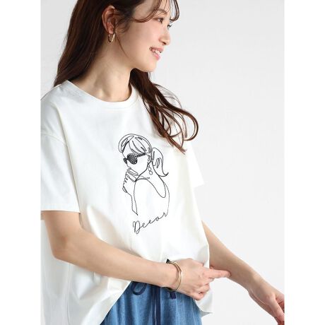 女性をモチーフにした刺繍デザインが目を惹くTシャツ。