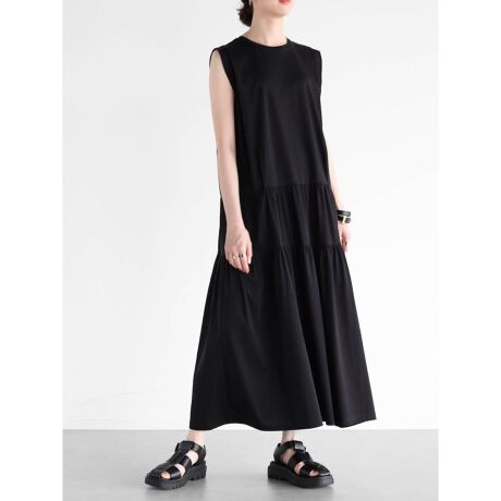 立体感のあるティアードデザインが、動くたびに美しいノースリーブティアードカットワンピース。