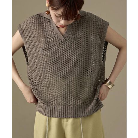 Fashion Letter ファッションレター 合わせるアイテムによってロングシーズン着回せる、薄手のざっくりニットベスト。