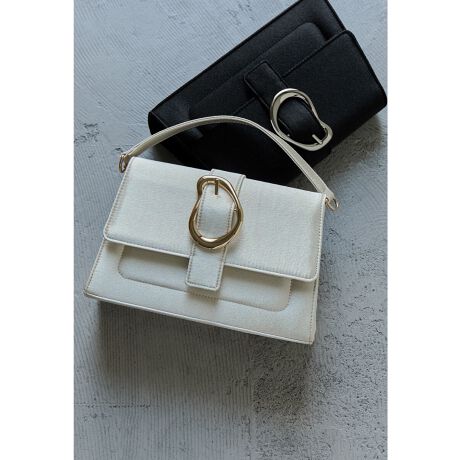 niana ニアナ 艶やかなサテン生地にメタルバックルがアクセントになったクラッチバッグ。