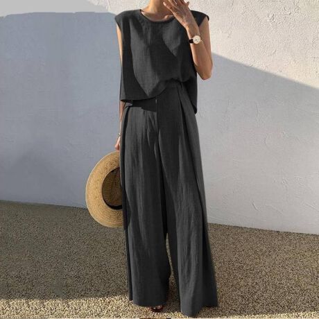【セットアップ】クルーネックノースリーブトップスとタックパンツ