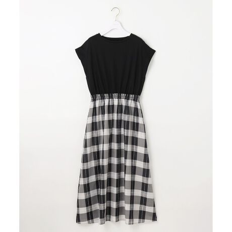 ・美シルエットを実現したドッキングワンピース・さらっとかぶれて着脱も楽ちんな一着・カットソー素材で猛暑でもTシャツ感覚で着こなせる・二の腕をカバーできる長めのフレンチスリーブ・華やかなビッグチェックと、コーデに取り入れやすいモノトーンチェックの2柄展開