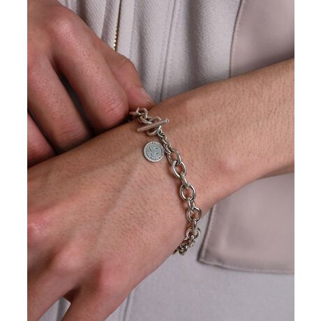 シンプルな平アズキチェーンとコインチャームが特徴のシルバーブレスレット