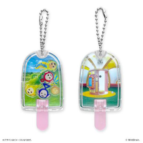 手のひらサイズのアイスキャンディの形をしたキーホルダー。本体を揺らすと中のアクリルフィギュアが可愛く動き回ります!