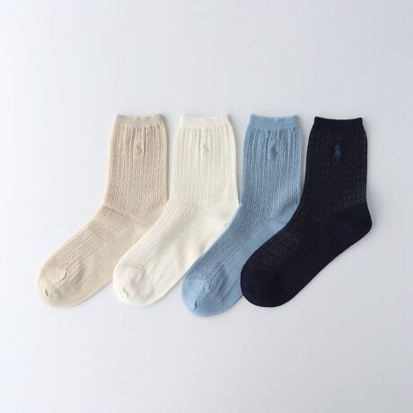 ポロ ラルフ ローレン 接触冷感素材 レースストライプ クルーソックス レディース