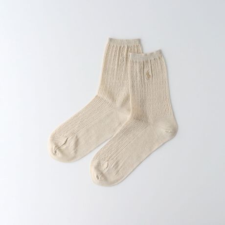 代表的なポニーロゴが刺繍されたカジュアルソックスです。透け感のあるレースデザインが可愛い靴下です。