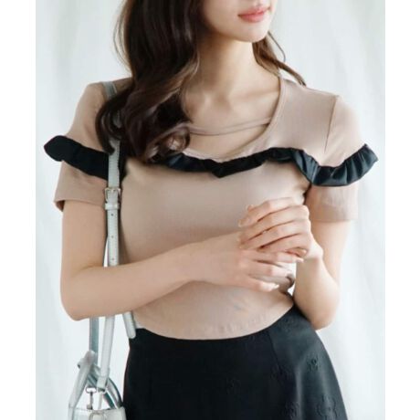 【Jasmine】フリルクロップド丈半袖Tシャツ