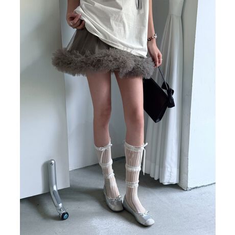 【Jasmine】チュール裾フリルボリュームミニスカート