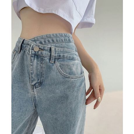 【Jasmine】アシメトリーウエストデザインワイドデニムパンツ