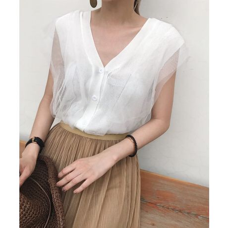 【Jasmine】チュールドッキングVネックニットトップス