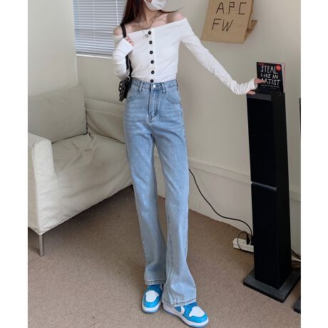 後ろにスリットが入った脚長効果バツグンのデニム!トレンドの大きめスニーカーやブーツと合わせても綺麗なシルエット。シンプルでどんなテイストにも合わせやすいです!