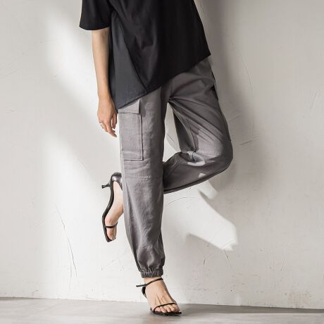 すっきりとしたシルエットが女性らしいバランスの、パラシュートカーゴパンツ。