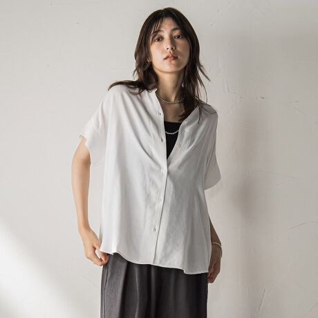 軽やかな素材が涼しげな、バンドカラーのハーフスリーブシャツ。