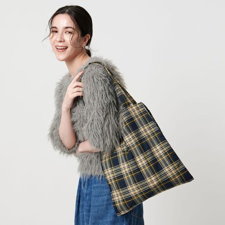 日々の装いにアクセントを加えてくれる、チェック柄トートバッグ。