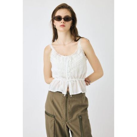 【LACE CAMI TOP / レースキャミトップス】■ポイント&ディテール2種類のレースを使ったキャミトップス。フロントもボタン使用で着脱しやすいももポイント。ウエストが絞れるデザインになっているのでスタイルアップします。■スタイリングキャミトップでも決まる1枚ですが、タンクや、Tシャツの上に羽織ったスタイリングもおすすめ。■生地透け感:あり※刺繍部分裏地:なし伸縮性:なし光沢感:なし●ひっかけに注意本品は素材の特性上色落ちします。洗濯、クリーニング、着用(使用)時に他の衣類や雑貨、家具類に色移りする事があります。特に汗や雨等で湿った状態では、色落ちが顕著になります。白、淡色との組み合わせは避け、お取り扱いには十分ご注意下さい。■商品のお気に入り登録お気に入りアイテムの再入荷・在庫1点などの通知を受け取ることができます。■ブランドのお気に入り登録新作アイテムの入荷や人気アイテムの再入荷、おすすめトピックスなど、いち早くブランドの情報を受け取ることができます。[注意事項]※画像の商品はサンプルです。実際の商品と仕様、加工が若干異なる場合があります。※画像の商品は光の照射や角度、お使いのモニター環境により、実物と色味が異なる場合がございます。※着用、お取り扱いの際は、アテンションタグをご確認ください。