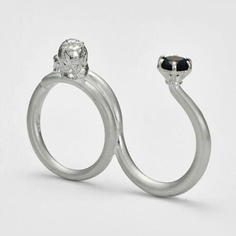 大きく広がる夜空の下、星の光に照らされたライオンの姿をイメージしてデザインされた、ダブルフィンガータイプのシルバーリング。力強くも静かな存在感を放つライオンは、職人の手によって細部まで丁寧に表現されています。モダンな曲線を描くリングとのコントラストが美しく、指に沿うように馴染みながらも、特別な存在感を放つ一本。星座や神話の世界を思わせるような、物語性のあるデザインが魅力です。スタイリングの主役としても、他のリングと合わせて個性を引き立てるアイテムとしてもおすすめです。※天然石や天然素材を使用しているものは、サイズ・色味・風合いの違いや、若干の傷、内包物の有無などに個体差があります。予めご了承ください。※サイズ直し不可。
