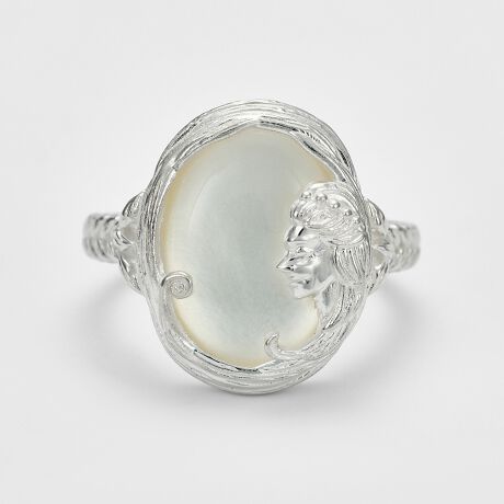 乙女座のモデルとなった女神・デーメーテールをモチーフにした、神話の世界観を感じさせるリング。石座には、風に揺れるような女神の豊かな髪を繊細にデザインし、アーム部分には豊穣の象徴である麦の穂をあしらいました。使用したのは、クォーツと白蝶貝を重ねたダブレットストーン。乙女座の物語に登場する、純粋で美しい心を象徴するような、やわらかな光を放ちます。神話のストーリーを感じながら、手元に静かな存在感を添えてくれる一本。星座にちなんだギフトや、自分だけのお守りジュエリーとしてもおすすめです。※天然石や天然素材を使用しているものは、サイズ・色味・風合いの違いや、若干の傷、内包物の有無などに個体差があります。予めご了承ください。※サイズ直し不可。